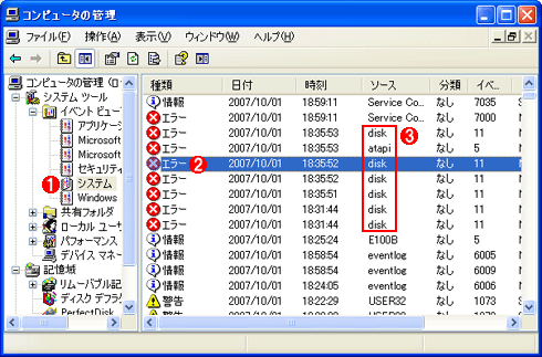 ディスクの故障をイベント・ログで確認する - パソコン修理・データ復旧はパソコンライフにお任せ! 電話番号 090-1369-9203